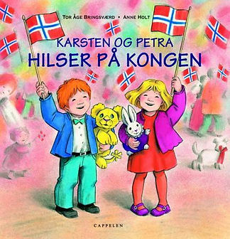 I år har vi tulipaner i vinduene nederst og flagg øverst.